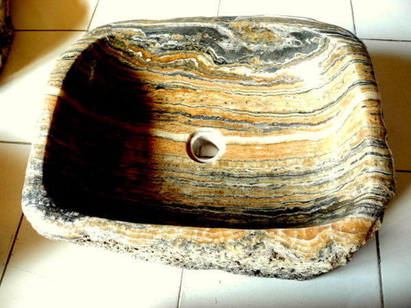 Stone sinks—which can be quite expensive—are available in marble, granite, sandstone, green jade, onyx, and travertine. Because of the wide variety of stones and varying colors, each stone stink will have a one-of-a-kind look. Stone sinks are carved out of a single slab, and they can be carved to any shape and size that the slab allows.